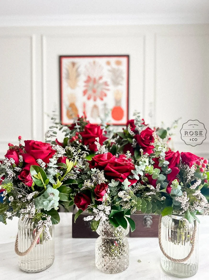 Introducing the Red Colour Table Posy, the perfect way to add a splash of colour to any room! This beautiful ceramic pot is filled with a selection of red seasonal flowers, making it the perfect gift for any flower lover. Whether you're looking for a romantic gesture or just a way to brighten up your home, this posy is sure to make a statement. With its unique combination of vibrant reds, this posy is sure to bring a smile to anyone's face.